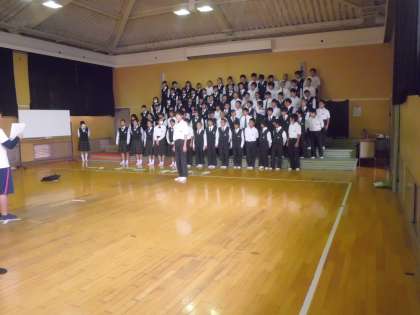 2年生はクラスごとに歌の練習をしています。18日に学年の合唱コンクールを武道場で行います。