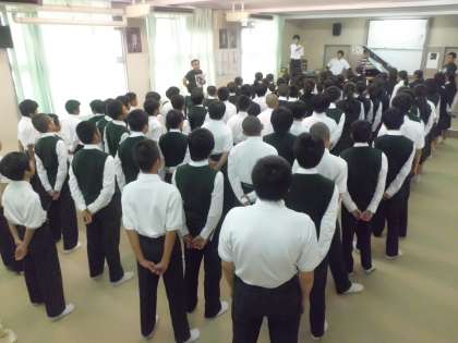 1年生の全員が音楽室で、全体合唱の練習をしました。