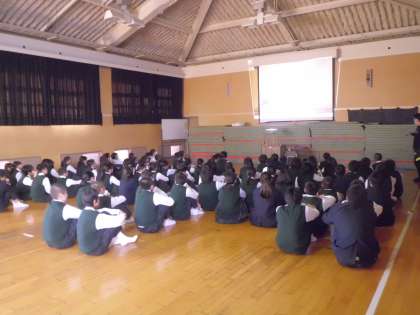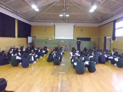 武道場で、自分たちの発表の様子を鑑賞しました。