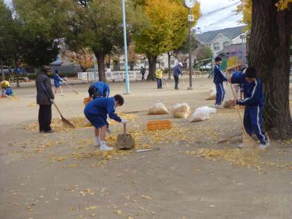 一生懸命に 落ち葉を集めました。