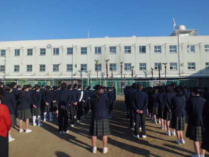 運動場で2学期の終業式を行いました。