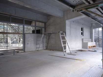 先日も公開した1階入口にサッシが取り付けられました。横には手洗い場が設置されます。