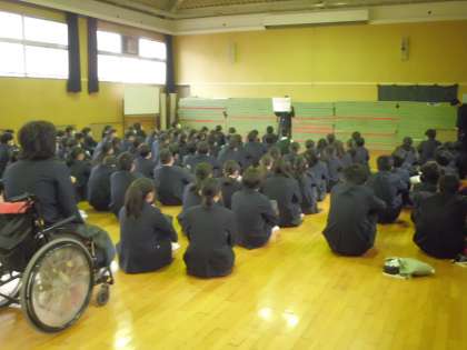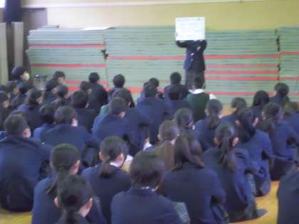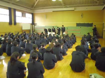 2年生は、毎週金曜日の朝に武道場で学年集会を行っています。