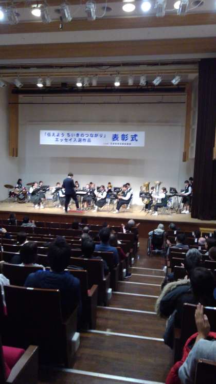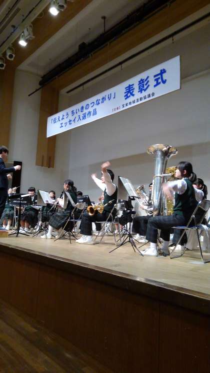 表彰式の後、吹奏楽部の演奏が行われました。会場も盛りあがりました。
