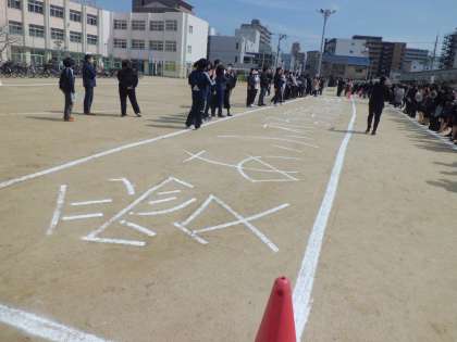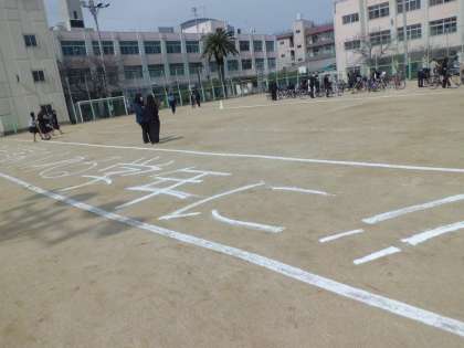 運動場に出て花道を通って、東陽中学校に戻りました。