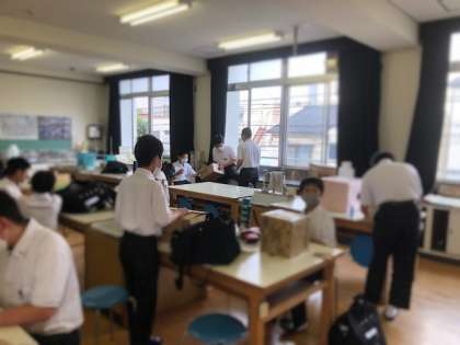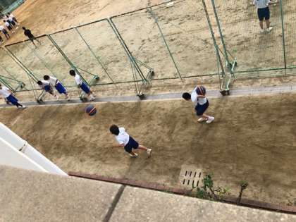 写真は理科部が空気砲を作成している様子と男子バスケ部の活動の様子です。