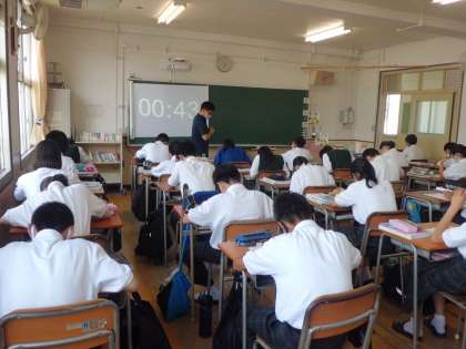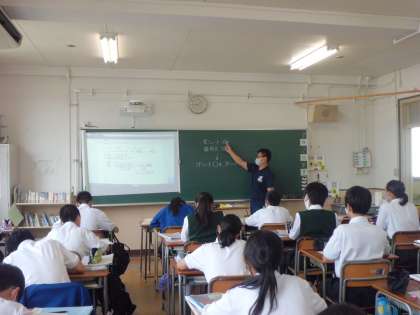 本日、2年1組数学の授業で、校内研究授業を行いました。
