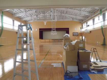 体育館の中もほぼ完成してきました。