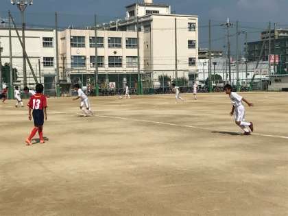 本庄中学校と対戦し、猛暑の中でしたが最後まで走りきり、勝利しました。