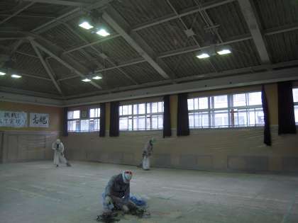 2学期末懇談2日目の18日(木)、武道場内の足場が取り除かれ、武道場には元の広さが戻りました。むしろ、天井が撤去されたので、工事前より広くなったように感じられます。あとは保護材などの取り外し・清掃・検査等が行われ、26日(金)には本校に引き渡される予定です。