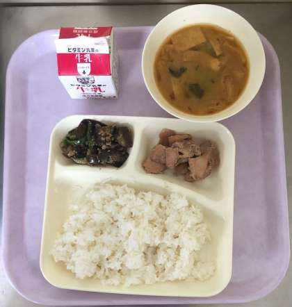 鶏肉のてり焼き、なすのそぼろいため、みそ汁、おいしくいただきました。