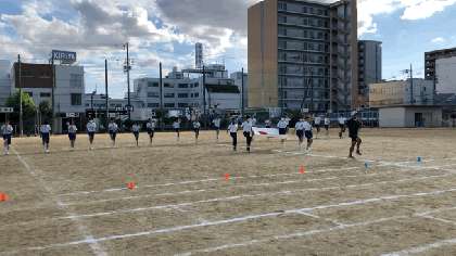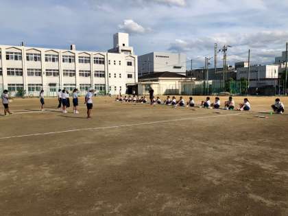 放課後、グランドで体育委員・生徒会による開閉会式練習を行いました。
