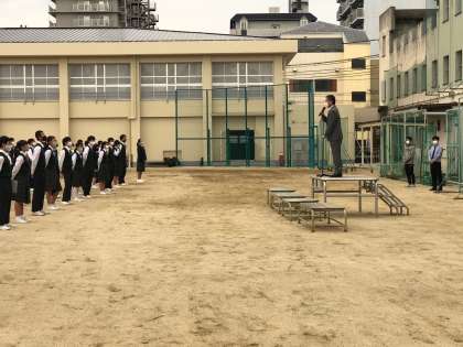 全校集会で、生徒会選挙の立候補者の演説がありました。
