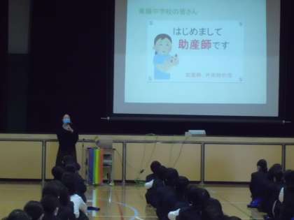 5限目に1年生は、「大切ないのち と あなたのこと」をテーマに助産師の方を講師にお招きして、生命の誕生について学習しました。