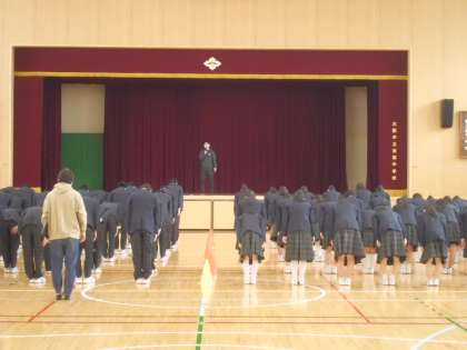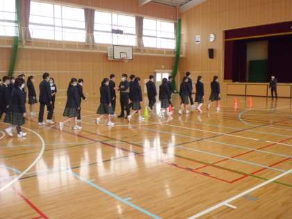 体育館に椅子の準備はないものの、3年生全員での練習は初めてでした。