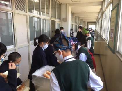 給食当番さんは、手際よく、その他の人は協力して配膳をしていました。