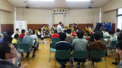 吹奏楽部は地域に根ざした演奏活動をおこなっています。今回、障がい者支援施設「今林の里」の音楽会にて、演奏をさせていただきました。