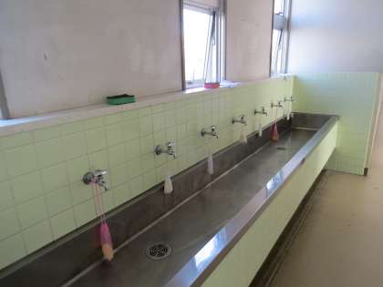輝く廊下、 きれいなトイレ、ごみのない洗面所、落書きのない机、教室 整然とした環境が 学ぶをさらにアップさせる。