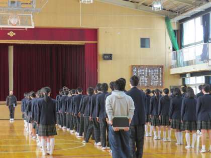3年学年集会 4月23日(木) 修学旅行をすばらしいものにするために、自覚を持って行動しよう(4月24日)