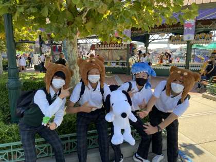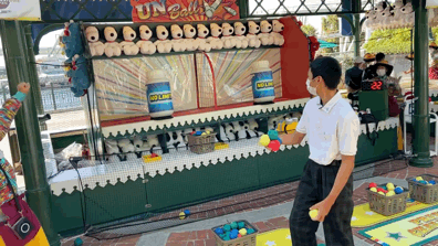 ボール当てゲームで、スヌーピーのぬいぐるみをゲットしました。
