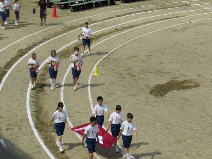 今日まで準備をしていただいた体育科の先生がたを中心に、係り生徒の皆さんごくろうさまでした。入場行進