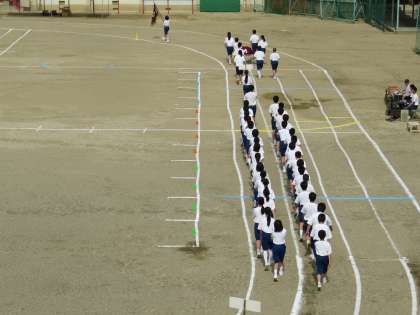 体育大会予行 大地をけって堂々たる行進を (6月10日)