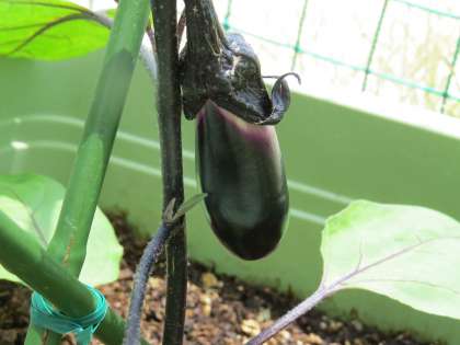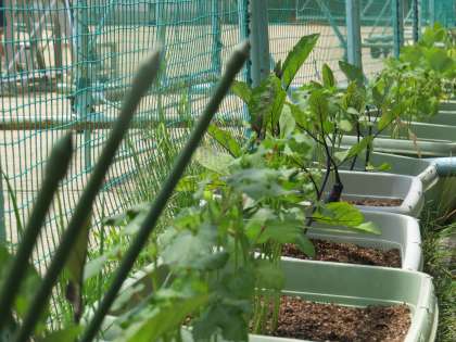 おおきなプランターに、野菜が実りはじめました。大きく成長するまでには、まだ、1か月以上かかるかな。