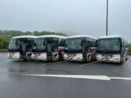 午前中の体験学習後、昼食をとり、本日の宿舎へ向かってます。