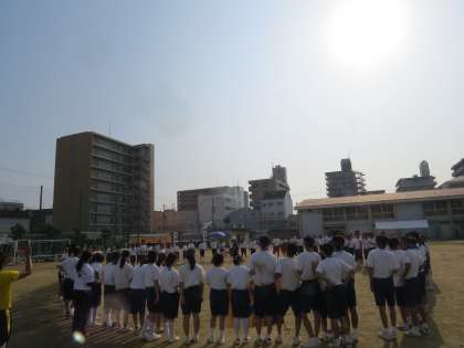 3年生はグランドに円陣をつくり、先生への感謝の思いを伝えました。