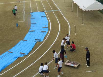 体育大会当日 前日からの大雨が朝がたまで降り続く。