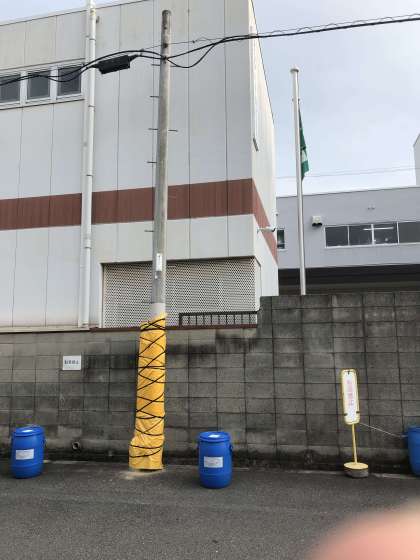 本日(8月23日)、東陽中学校南側の道路の事故による電柱の折れですが、