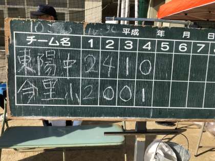 お父さんや先生はがんばりました。結果、東陽中7−3今里小で勝利することができ来週の相生中で行われる準決勝に進出できました。