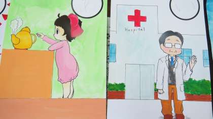 美術部の皆さんが東成消防署から依頼された「防災かるた」の絵をつくってくれました。