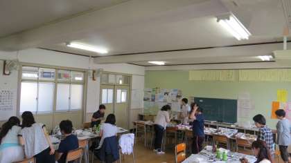 小中連携夏期交流講座 2 「クラフト」 15名の皆さんが参加 森林インストラクターの指導のもと楽しく作品づくり(7月27日)