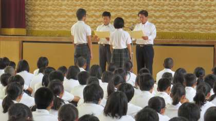 〇社会を明るくすく運動作文、バレーボール部、吹奏楽部の表彰。