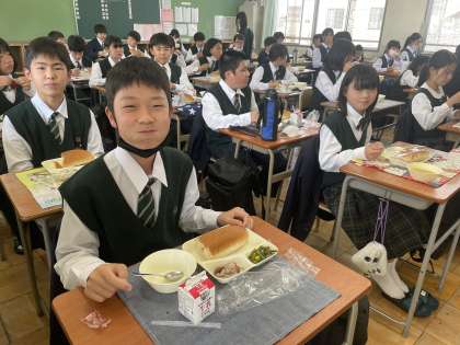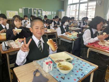 朝から今里小学校で調理されて4時間目の途中に温かいおかずが運ばれてきます。
