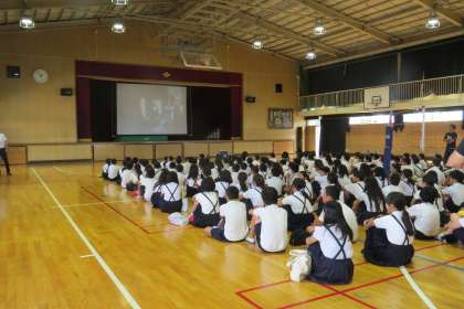 小中交流会 部活動体験 児童の皆さんは、中学校への期待と不安を抱きながら、どうでしたか(9月5日)