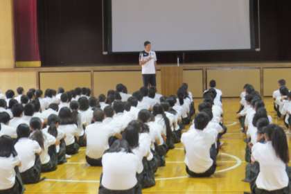 Jリーグサッカーチーム 「セレッソ大阪」から3名のコーチの皆さんにお越しいただきました。夢を叶えるために、あきらめない 挫折を乗り越えるその時、多くの人の支えで乗り越えていける。