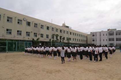 野球部 サッカー部 ソフトボール部 運動場から聞こえる 声の真剣さは、必ずうまくなる。また、体育館からの声も聞こえます。バスケット部の声、何を言っているのかまでわからないのですが、「元気出していこう」 オーオー。と聞こえます。  女子バレーの声も届きます。すごいなあと感じています。声の真剣さは必ず、勝利への一歩が近づいています。