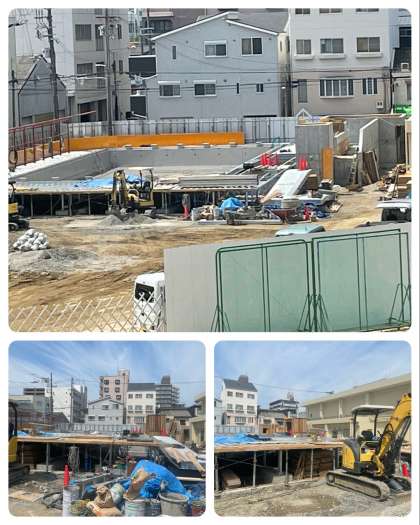 大勢の職人さんが朝早くから働いています。7月に完成予定です。
