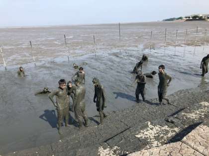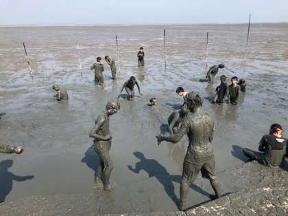 個人の判別ができないくらい泥だらけになりました。この後、泥を落としてバスで宿泊先へ向かいます。