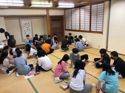 夕食、入浴後は各クラスで生徒が考えたレクリエーションを行いました。