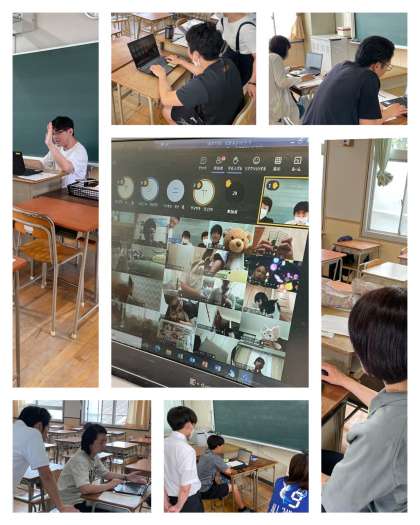 本日は午後2時から学校と各家庭を双方向で通信してオンライン学活を行いました。