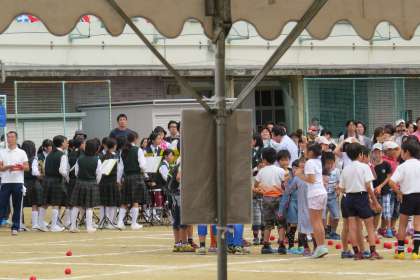 体育館では [敬老のつどい」 運動場では「保育園の運動会」とゼロ歳児から年配のかたまで 多くのかたが 東陽中学校にお越しいただきました。