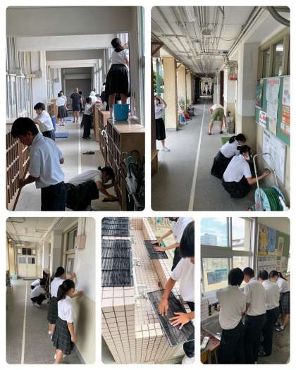 5限はすべての学年で大清掃を行いました。暑い中ですが協力してよく働いていました。