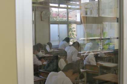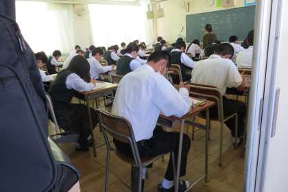 精一杯の学習でのぞめましたか。登校時 校門で皆さんに会うと 、手に学習ノートや単語帳などを片手に、友達と学習しながら、登校しています。