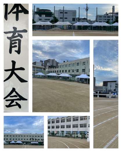 本日午後から係の生徒により、体育大会の会場の設営を行いました。