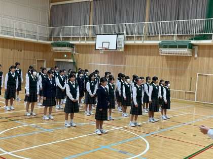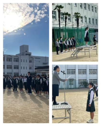全校集会とバレー部の表彰がありました。