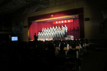 女子は頭の上から声を届ける 男子はお腹の下へ音を響かせる2年生(10月23日)