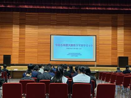 11月18日に城東区民センターにて行われた大阪市スマホサミットに、本校生徒会長の岸田さんと副会長の下村さんが参加しました。